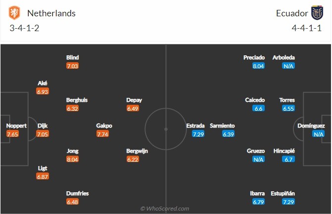 | Đội hình dự kiến của Hà Lan và Ecuador |