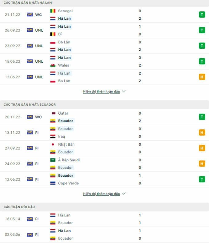 Lịch sử đối đầu giữa Hà Lan - Ecuador