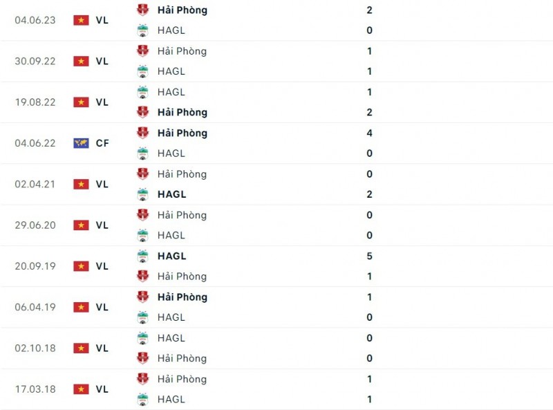 Thành tích đối đầu giữa Hải Phòng và Hoàng Anh Gia Lai