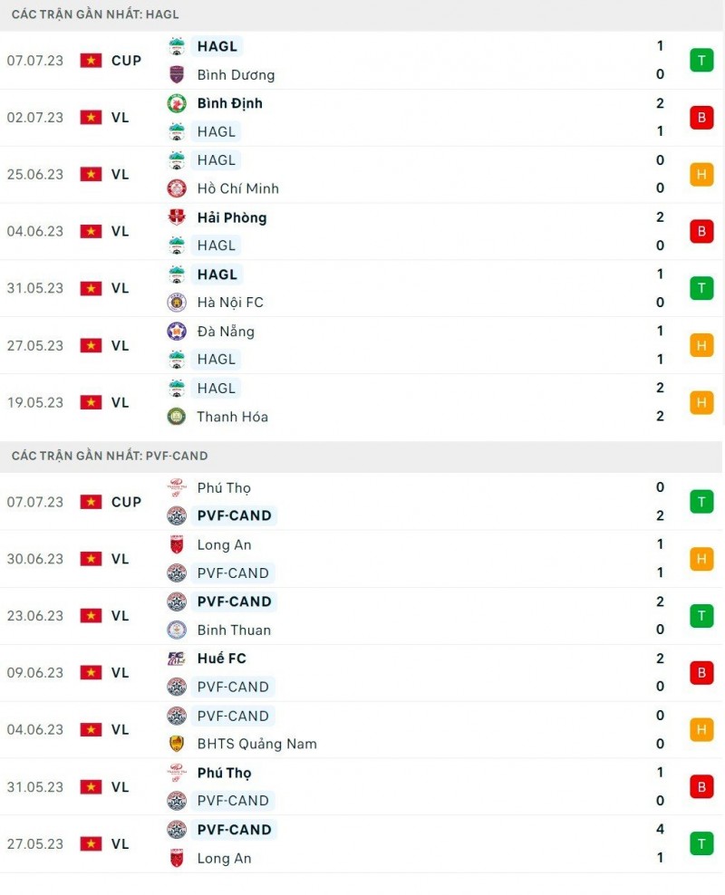 Thành tích gần đây giữa Hoàng Anh Gia Lai và PVF-CAND: