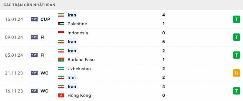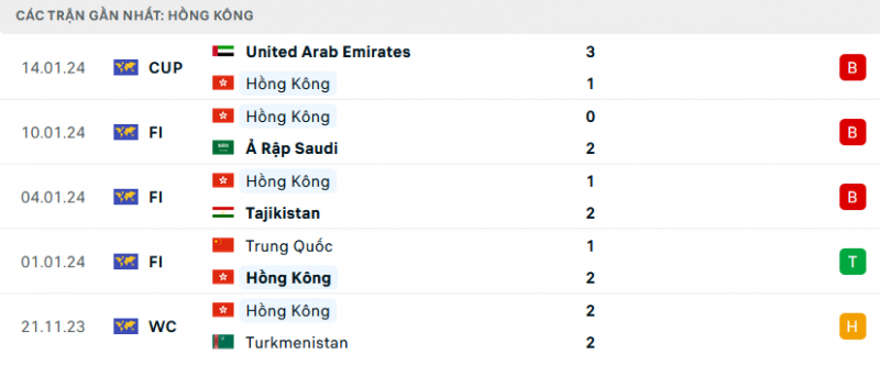 | Các trận gần nhất của Hong Kong (Trung Quốc). |