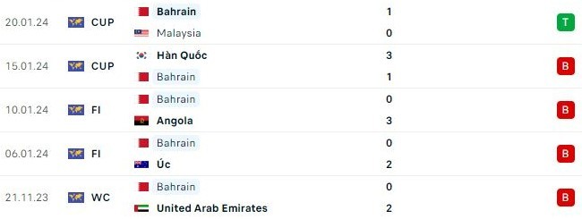 Trong khi đó, Bahrain chịu thất bại 1 - 3 trước Hàn Quốc ở trận ra quân và sau đó chỉ thắng Malaysia với tỷ số 1 - 0. Bởi vậy, họ cần nỗ lực rất nhiều trong trận đấu này để có cơ hội đi tiếp tại giải đấu này.