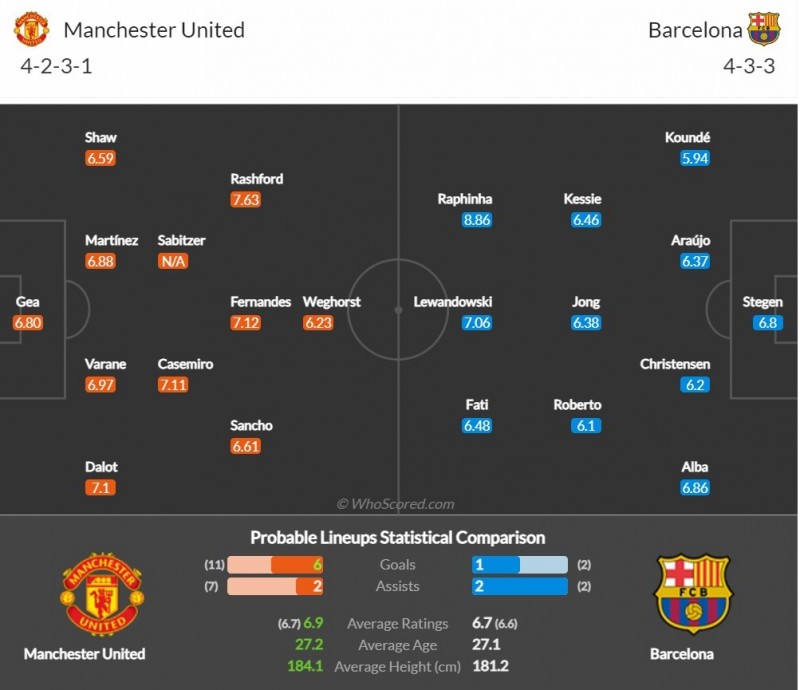 Về phần mình, Barcelona sẽ có chuyến hành quân tới Old Trafford với vô vàn bất lợi về nhân sự. Trong đó sự vắng mặt của bộ đôi Dembele và Pedri vì chấn thương chắc chắn sẽ ảnh hưởng nhiều tới mặt trận tấn công của Blaugrana. Ngoài ra việc Gavi bị treo giò cũng khiến HLV Xavi gặp khó trong việc tung ra sân đội hình ưng ý nhất.