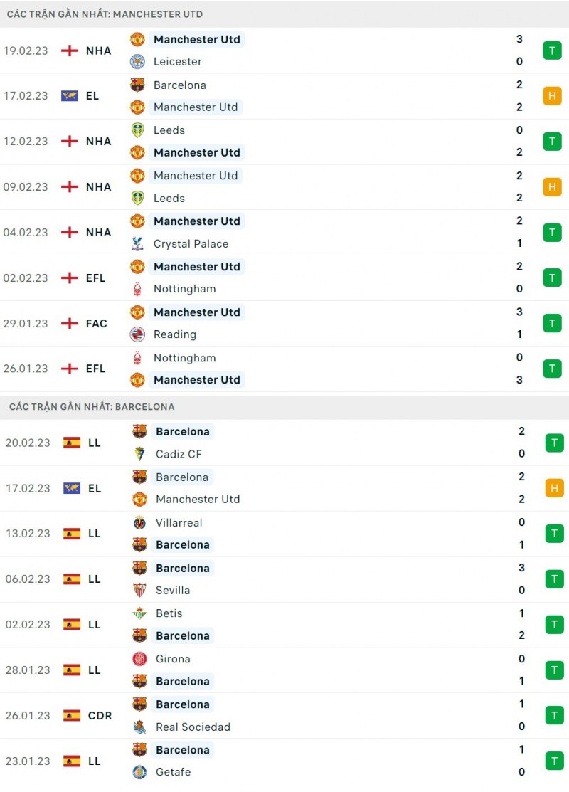 Barca đã bất bại trong 5 màn so tài gần nhất với MU. Đó thực sự là một con số tạo niềm tin với thầy trò Xavi lúc này. Và chắc chắn họ sẽ nỗ lực hết sức mình trên sân khách để qua đó có thể tiếp tục chuyến phiêu lưu của mình ở đấu trường châu lục.