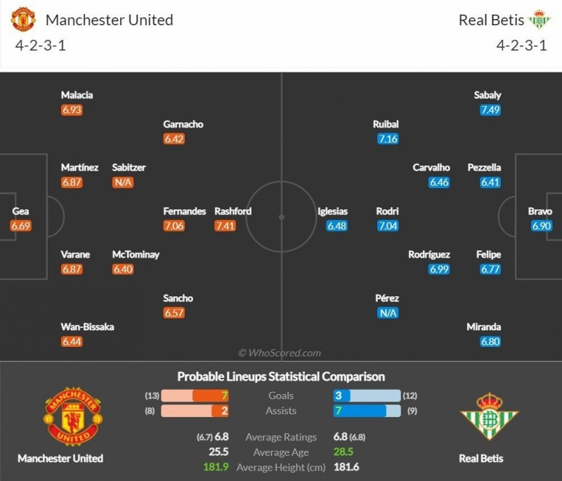 Đội hình dự kiến Man United và Real Betis