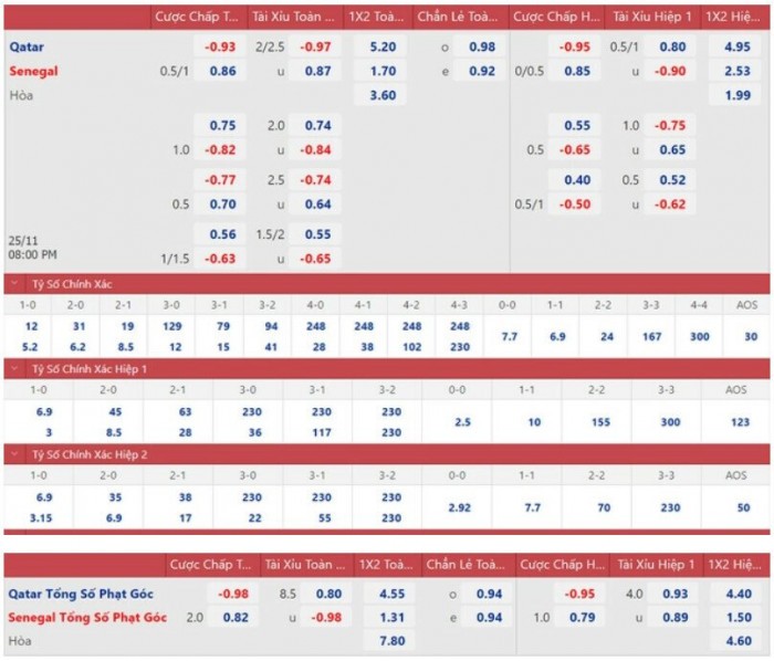 Tỷ lệ soi kèo giữa Qatar - Senegal