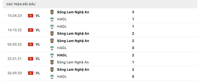 Thành tích đối đầu giữa Sông Lam Nghệ An và Hoàng Anh Gia Lai