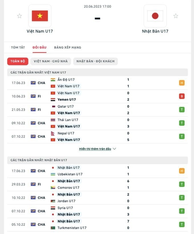 | Trận U17 Việt Nam và U17 Nhật Bản diễn ra lúc 17h00 ngày 20/6, thuộc vòng bảng U17 châu Á 2023 |