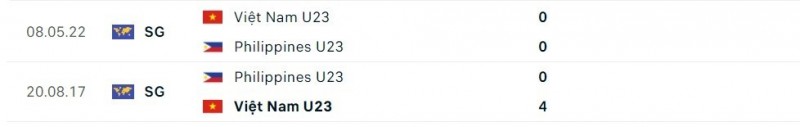 Thành tích đối đầu giữa U23 Việt Nam và U23 Philippines