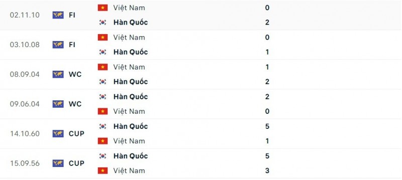 Thành tích đối đầu giữa Việt Nam và Hàn Quốc