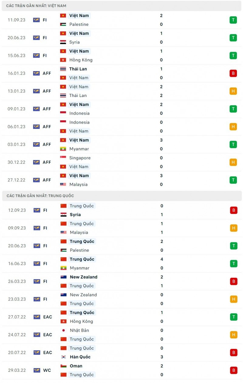 Thành tích đối đầu giữa Việt Nam và Trung Quốc