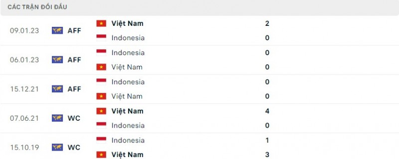 | Đối đầu giữa Việt Nam vs Indonesia. |