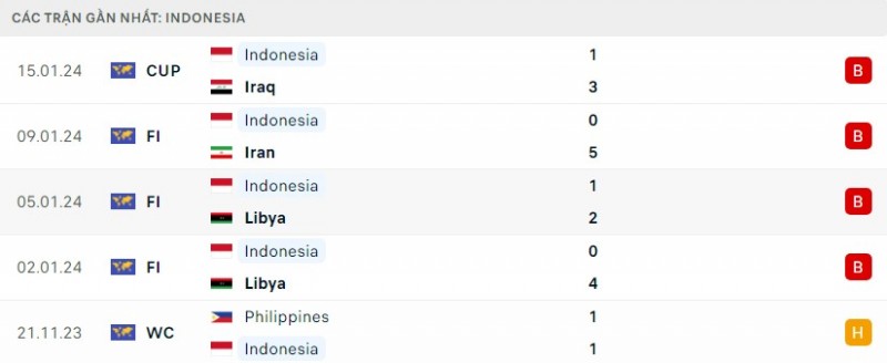 Tương tự như đội tuyển Việt Nam, Indonesia cũng thua cuộc ở trận mở màn ra quân tại Asian Cup 2023. Theo đó, đội tuyển đã chịu thất bại trước Iraq với tỷ số 1 - 3. Đây là thất bại đầu tiên của Indonesia ở trận ra quân tại 1 kỳ Asian Cup. Đồng thời ảnh hưởng tới kết quả xếp hạng của đội tuyển này khi bị đẩy xuống đứng cuối bảng D. Như vậy, trong trường hợp Indonesia thua Việt Nam, trong khi Iraq thắng Nhật Bản thì đội tuyển này sẽ phải sớm chia tay với Asian Cup 2023.
