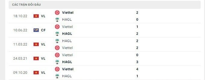 Thành tích đối đầu giữa Viettel và Hoàng Anh Gia Lai