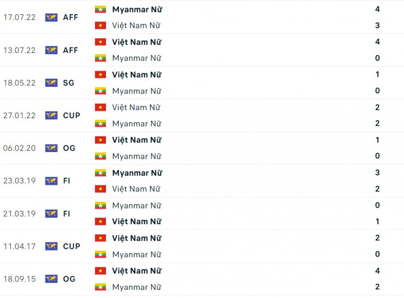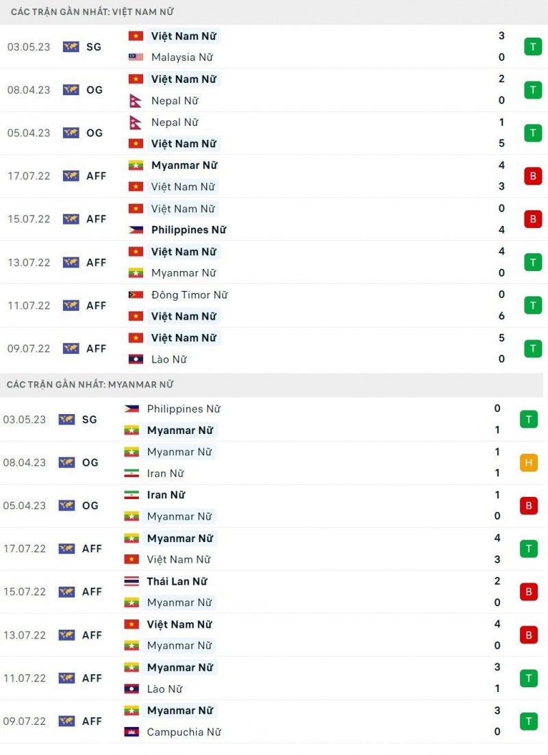 Dù vậy ở trận đấu gần nhất ở giải AFF Cup 2022, Myanmar đã đánh bại đội tuyển nữ Việt Nam trong trận tranh hạng ba. Do đó đoàn quân của ông Mai Đức Chung sẽ phải thi đấu rất tập trung và cảnh giác trong trận cầu này.