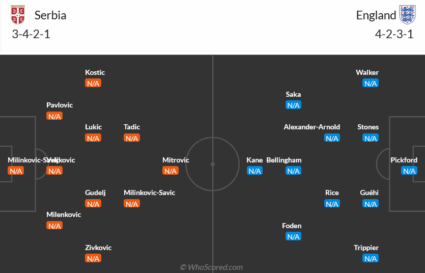 Trận đấu giữa Serbia và Anh sẽ diễn ra vào lúc 02h00 ngày 17/06 tại SVĐ Veltins-Arena (Nordrhein-Westfalen, Đức).