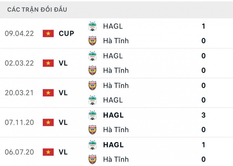Thành tích đối đầu của Hà Tĩnh và Hoàng Anh Gia Lai
