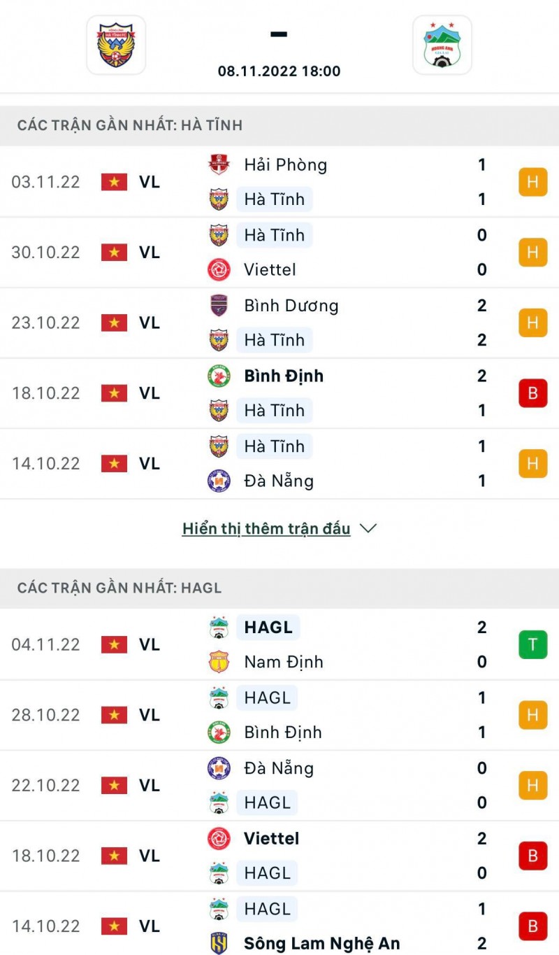 Phong độ, thành tích gần nhất củaHà Tĩnh - Hoàng Anh Gia Lai: