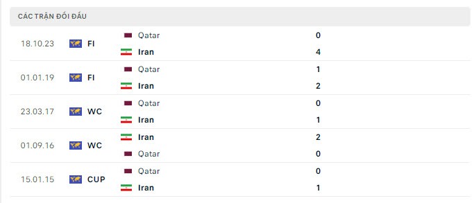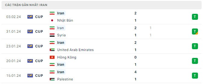 | Các trận gần nhất của Iran. |