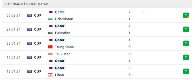 | Các trận gần nhất của Qatar. |