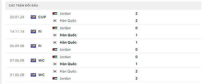 Trước đó, Jordan và Hàn Quốc cũng đã có 5 lần chạm trán nhau, đội bóng Đông Á bất bại trong mọi lần và thắng 3 trong số đó.