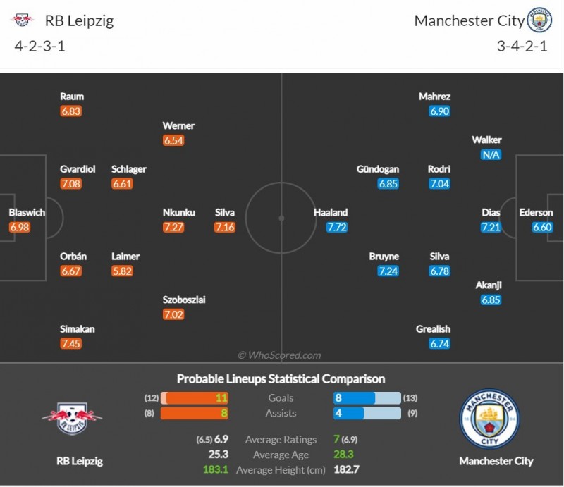 Xét trên mọi phương diện từ đẳng cấp, chiều sâu đội hình lẫn phong độ, có thể nói đội chủ nhà RB Leipzig rất khó có thể so sánh với câu lạc bộ Manchester City ở thời điểm hiện tại. Tuy nhiên với yếu tố sân nhà, họ hoàn toàn có thể tạo ra bất ngờ ở trận này.