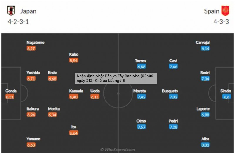 Dự đoán tỷ số:Nhật Bản 1-1 Tây Ban Nha