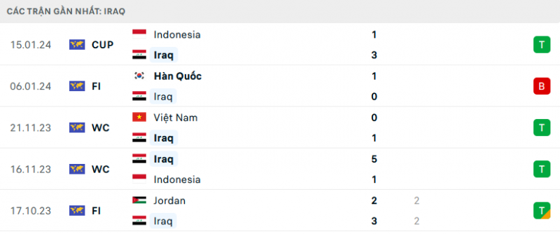 Đội tuyển Iraq được đánh giá đang có phong độ cao trong thời gian gần đây. Ở 2 trận đấu đầu tiên tại vòng loại World Cup 2026 khu vực châu Á diễn ra vào tháng 11/2023, Iraq đã toàn thắng trước cả Indonesia và Việt Nam, đây cũng là hai đội đang ở cùng bảng D tại Asian Cup 2023.