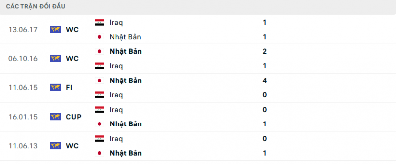 | Đối đầu giữa Nhật Bản vs Iraq. |