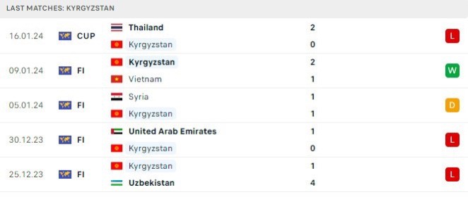 Trong khi đó đó, mục tiêu của Kyrgyzstan là giành vị trí thứ ba của bảng đấu. Tuy nhiên, đội bóng đã bị thất thế khi chịu thất bại với tỷ số 0 - 2 trước Thái Lan. Với kết quả này, Kyrgyzstan buộc phải nỗ lực không ngừng trong trận đấu với Saudi Arabia. Tuy nhiên, mục tiêu có điểm trong trận đấu này không hề dễ dàng, khi lối tấn công cũng như phòng ngự của Kyrgyzstan không tạo được dấu ấn rõ rệt.