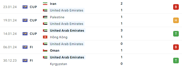 Bên cạnh đó, UAE là một một trong những ứng cử viên cạnh tranh cho chức vô địch của mùa giải năm nay, tuy nhiên, những gì đội bóng này thể hiện chưa thực sự thuyết phục. Cụ thể, UAE chỉ thắng Hong Kong (Trung Quốc), hòa Palestine, thua Iran tại vòng bảng và họ giành vé vào vòng 1/8 nhờ vị trí nhì bảng. Ngoài ra, UAE chỉ sở hữu 4 điểm, đây là số điểm thấp nhất kể từ khi đội bóng này tham gia Asian Cup 2011.