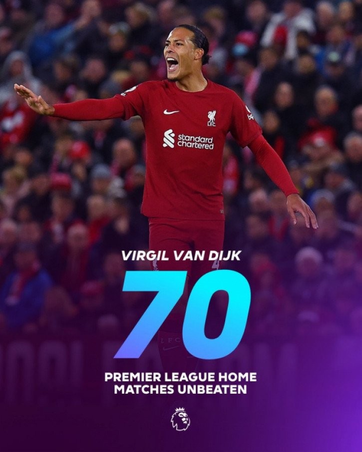 | Van Dijk dừng chuỗi trận không thua trên sân nhà ở con số 70 trận |