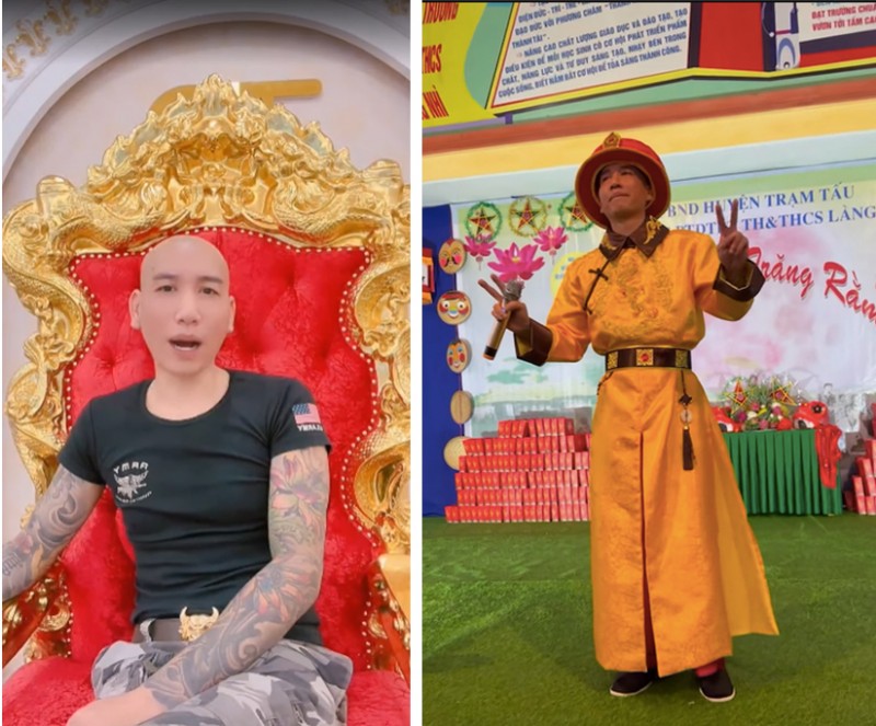 | Phú Lê ngồi ghế dát vàng trạm trổ hình rồng, nói về vụ ăn mặc như vua chúa nhảy trước 500 học sinh |
