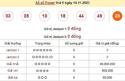 | Kết quả xổ số Vietlott Power 6/55 ngày 16/11/2023 |