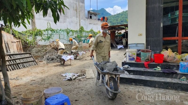 Liên quan đến công tác sửa chữa, khắc phục, công tác rải bạt lòng rãnh thoát nước mặt hồ thải quặng đuôi đã được hoàn thành; sửa đường nước sinh hoạt cấp cho 6 hộ dân; dọn bùn tràn vào sân vườn, chuồng trại các hộ dân..