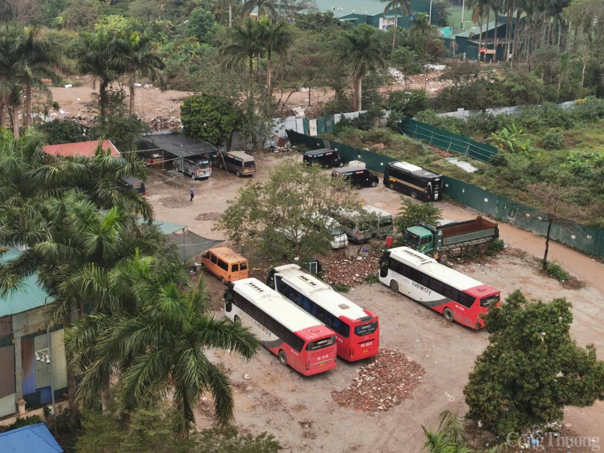 Cụ thể, tại vị trí phía sau Học viện Tư pháp trên phố Trần Vĩ, theo như thông tin từ chính quyền địa phương thì không có điểm trong giữ xe nào, nhưng ghi nhận của phóng viên sáng 24/2 cho thấy, mặc dù đã có một số xe rời khỏi bãi nhưng bên trong vẫn còn 3 chiếc xe 45 chỗ và hơn 10 chiếc xe loại 16 chỗ.