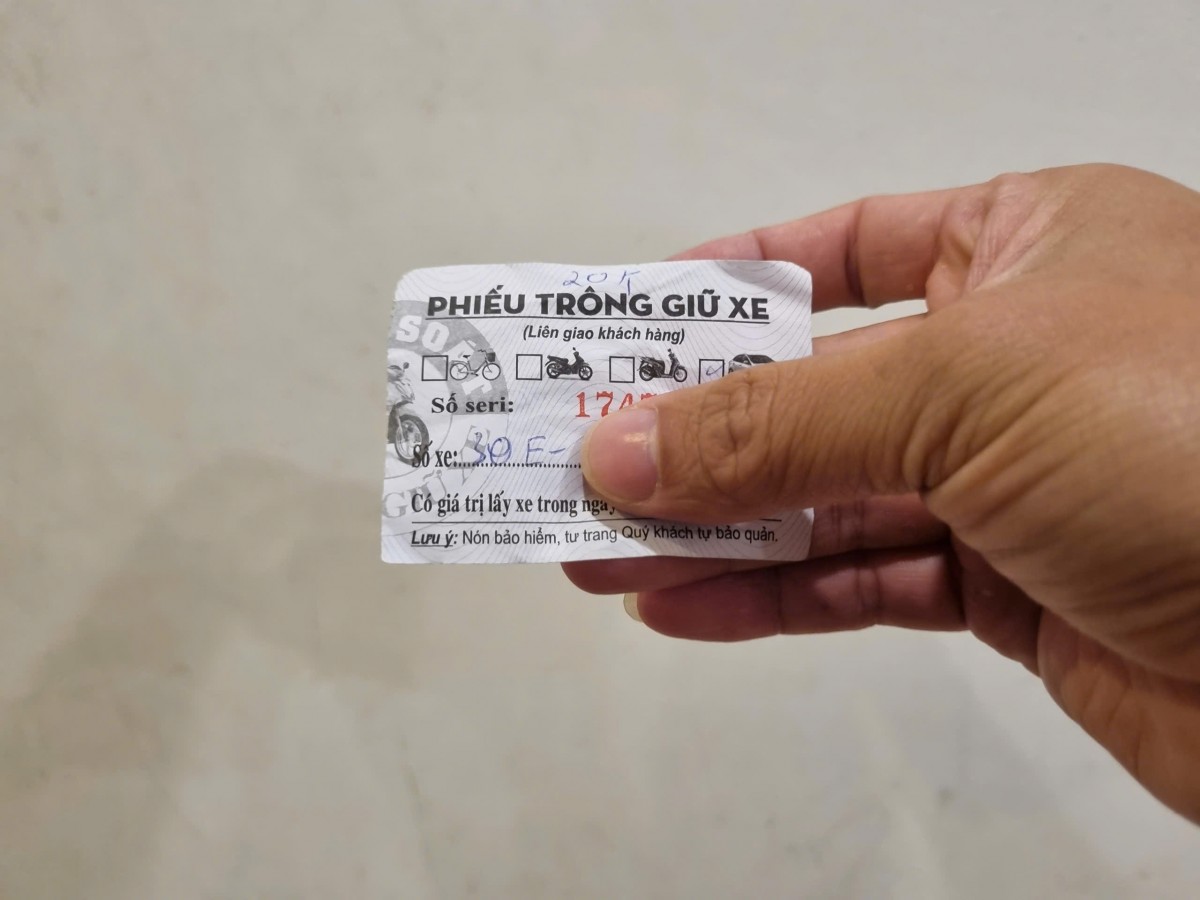 Khi chúng tôi gửi xe, nhân viên của bãi trông giữ xe ra thu tiền và đưa cho một chiếc vé với thông tin không đầy đủ, rõ ràng, có dấu hiệu sai quy định.