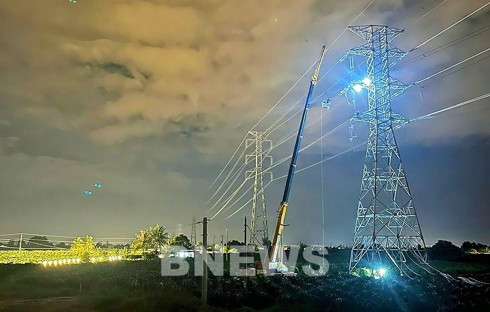 Thi công di dời vị trí 42 đường dây 220kV Phan Thiết - Hàm Tân. Ảnh: Đức Dũng/BNEWS/TTXVN