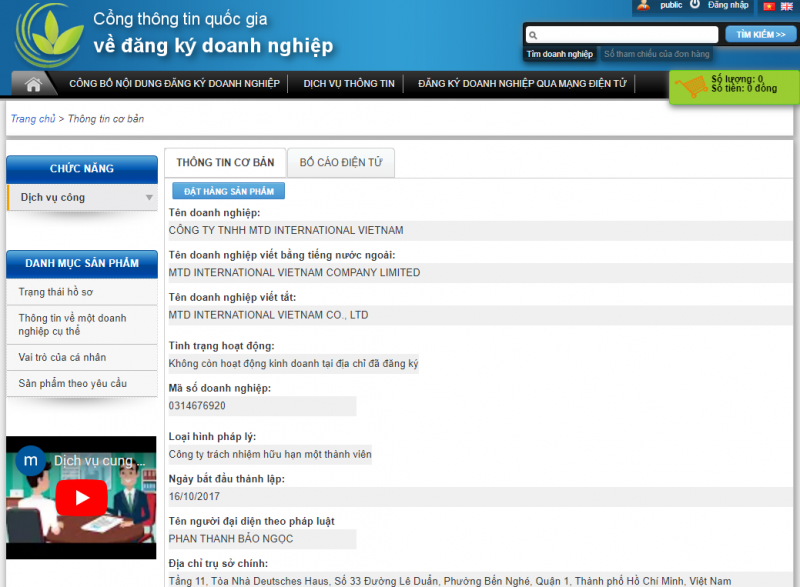 Công ty TNHH MTD International Việt Nam (MST: 0314676920) do bà Phan Thanh Bảo Ngọc làm người đại diện pháp luật được thông báo không còn hoạt động kinh doanh tại địa chỉ đã đăng ký là tầng 11, tòa nhà Deutsches Haus, số 33 Đường Lê Duẩn, phường Bến Nghé, quận 1, TP. Hồ Chí Minh…