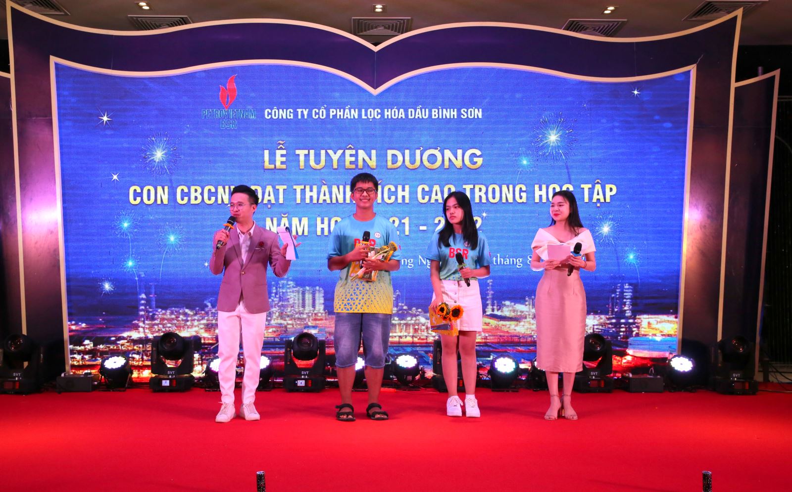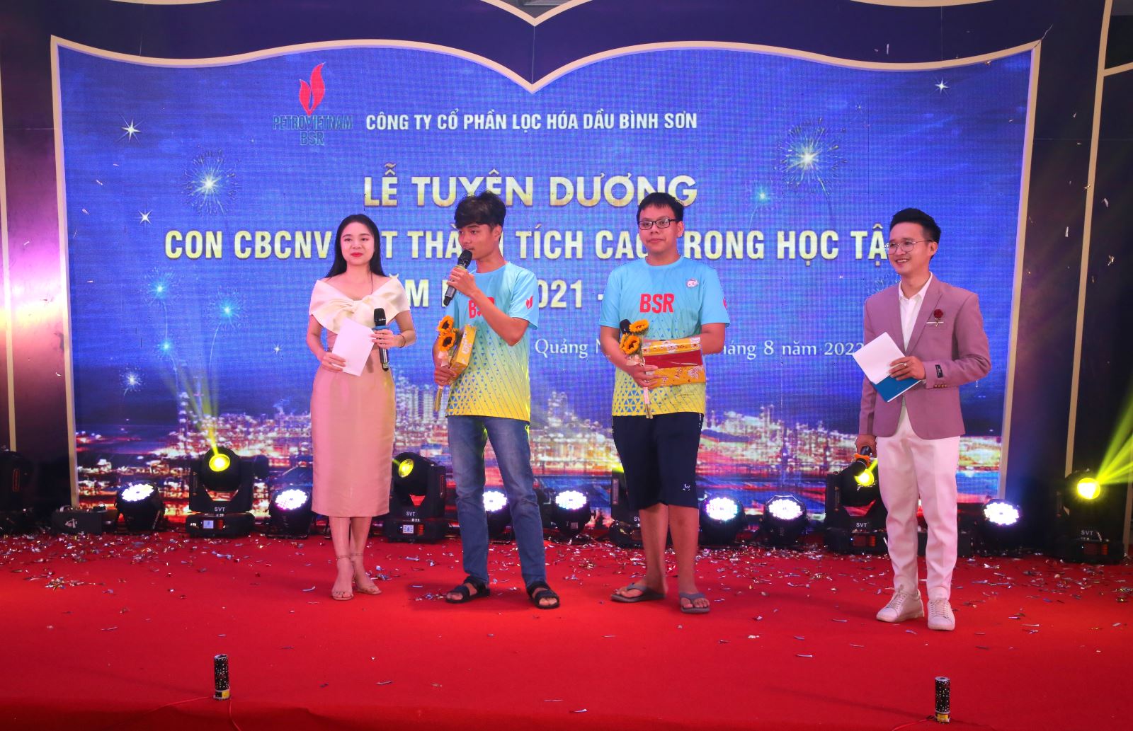 Phát biểu chúc mừng thành tích học tập của các em học sinh, ông Khương Lê Thành - Phó Bí thư thường trực Đảng ủy, Thành viên Hội đồng quản trị Công ty chúc mừng thành tích học tập của các em: “Năm học 2021 - 2022 là năm học đặc biệt đối với các em học sinh. Do ảnh hưởng của dịch bệnh Covid-19 nên các em học sinh nói chung và con em cán bộ công nhân viên Công ty BSR nói riêng phải trải qua những tháng học tập online rất vất vả. Các em không được đến trường, phải xa thầy cô, bạn bè. Song, bằng tất cả sự nỗ lực vượt bậc và quyết tâm rất cao, các em đã đạt được những kết quả tốt trong học tập. Nhằm động viên, khích lệ, tạo động lực cho con cán bộ công nhân viên phấn đấu rèn đức, luyện tài trở thành con ngoan trò giỏi, cháu ngoan Bác Hồ, luôn cố gắng phấn đấu, sống có lý tưởng, ra sức học tập;.. Và hôm nay, Công ty cổ phần Lọc hóa dầu Bình Sơn tổ chức Lễ tuyên dương con cán bộ công nhân viên đạt thành tích cao trong học tập năm học 2021 - 2022”.