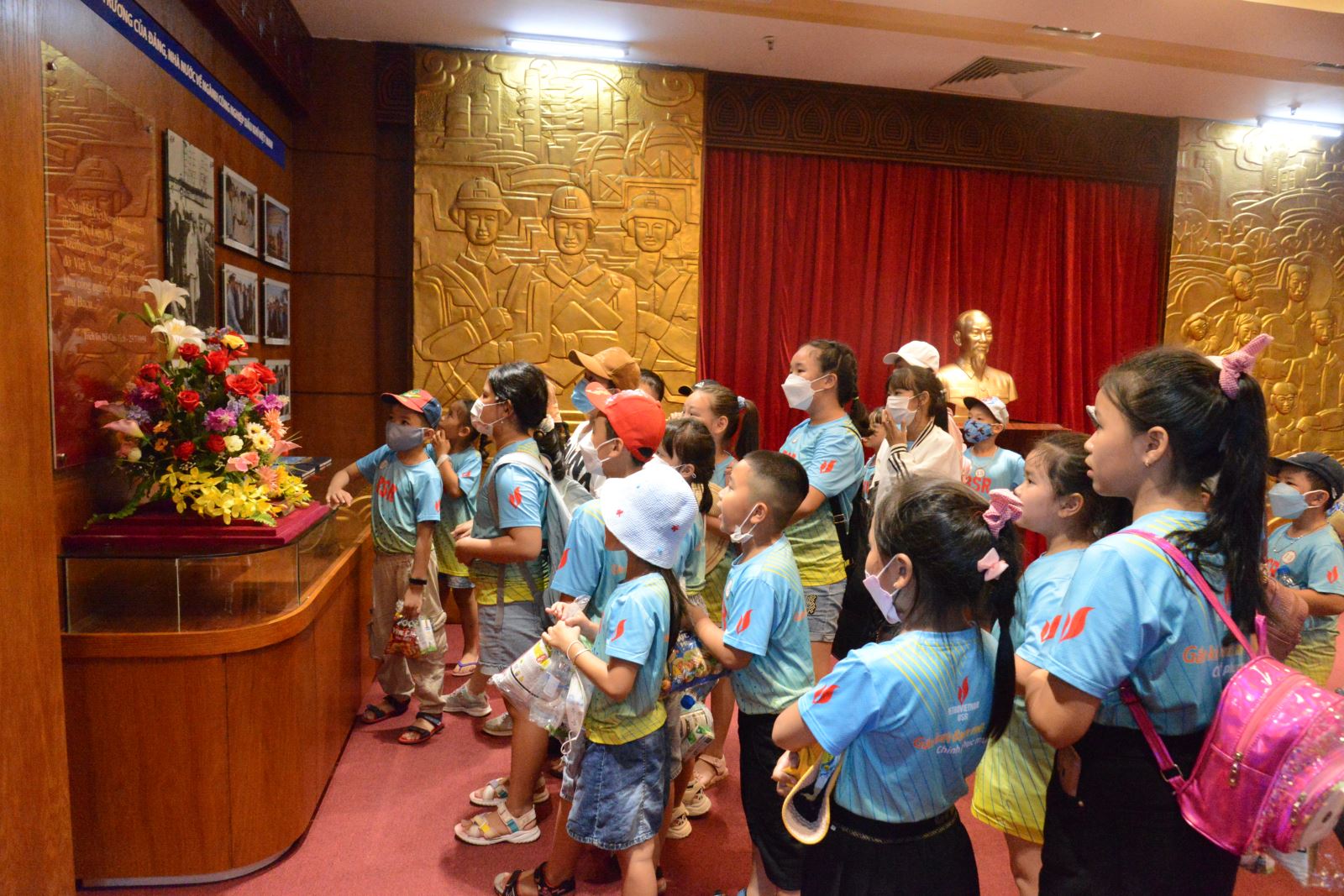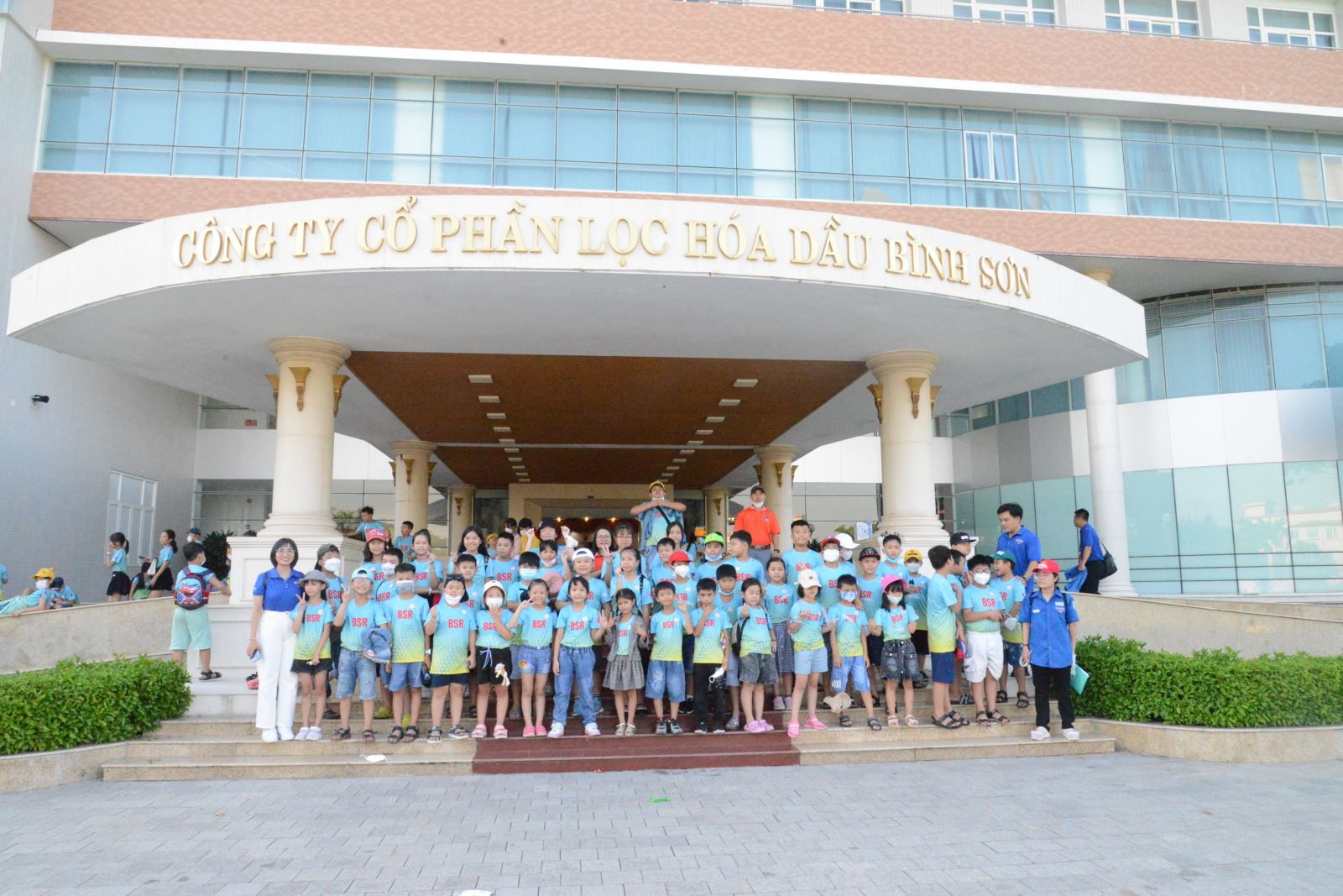 | Các em học sinh cấp tham quan Nhà máy Lọc dầu Dung Quất và phòng Truyền thống Công ty BSR |