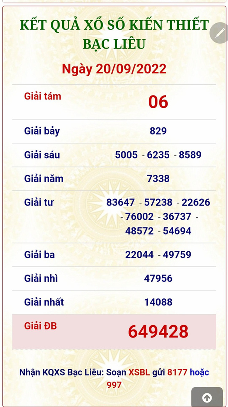 | Kết quả xổ số giải nhất ngày 20/9/2022 chính xác là 14088 |