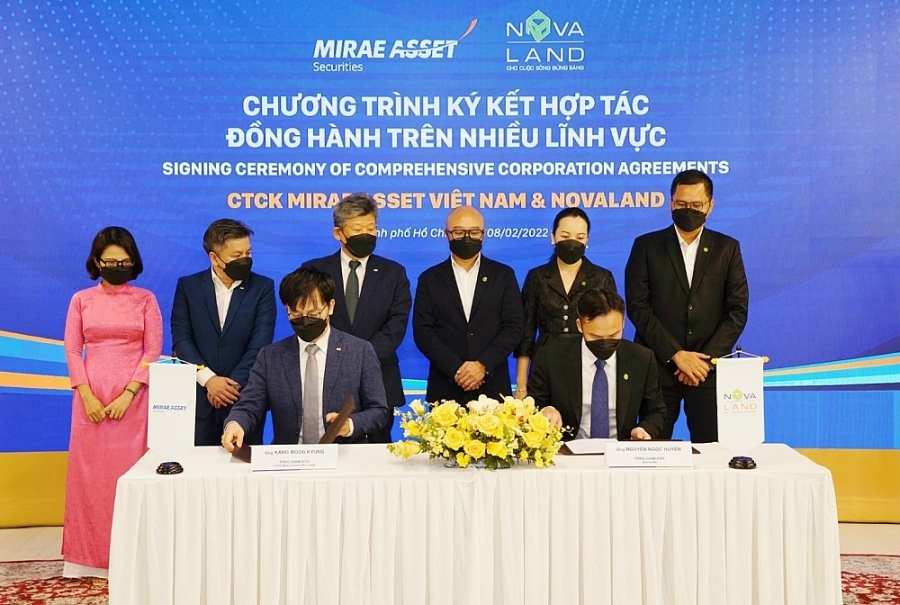 | Novaland tăng cường hợp tác với nhiều đối tác, hướng đến mục tiêu cùng nhau phát triển bền vững (Ảnh: Novaland ký kết hợp tác với Mirae Asset đồng hành trên nhiều lĩnh vực vào tháng 2/2022) |