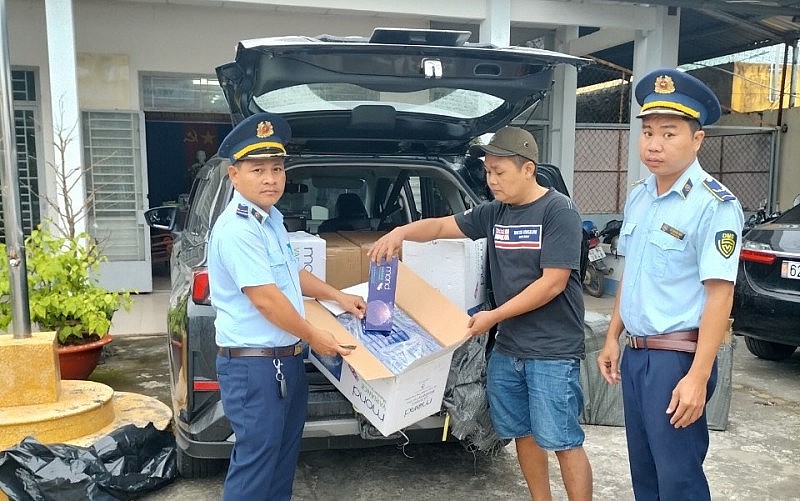 Theo đó, vào lúc 00 giờ 30 phút ngày 06/01/2023, trên tuyến đường thuộc ấp Chánh, xã Tân Mỹ, huyện Đức Hòa, Đội Quản lý thị trường số 1 mật phục bắt giữ phương tiện ô tô biển kiểm soát 51K-207.05 do đối tượng Vương Hoàng Quân điều khiển có hành vi vận chuyển 5.500 bao (20 điếu/bao) thuốc lá điếu do nước ngoài sản xuất, không có nhãn phụ bằng tiếng Việt và không in hình cảnh báo về sức khỏe (gồm 3.000 bao nhãn hiệu 555 Gold; 500 bao nhãn hiệu 555 Original và 2.000 bao nhãn hiệu Mond).