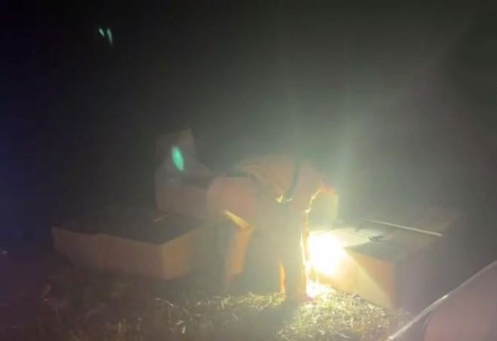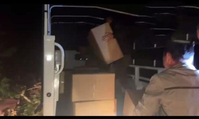 | Các đối tượng bỏ lại nhiều thùng các tông bên trong chứa thuốc lá lậu - Ảnh: CA |
