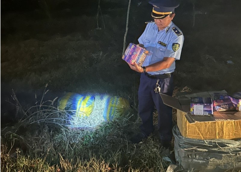 Kết quả khám đồ vật phát hiện bên trong các bao PP dệt màu xanh có chứa pháo dạng quả bóng số lượng 91,6 kg. Pháo hoa loại 1,8kg/hộp, số lượng: 32,4 kg chứa trong 18 hộp. Pháo hoa loại 2kg/hộp, số lượng 36 kg, chứa trong 18 hộp, xuất xứ Trung Quốc, đây là hàng cấm kinh doanh tại thị trường Việt Nam.