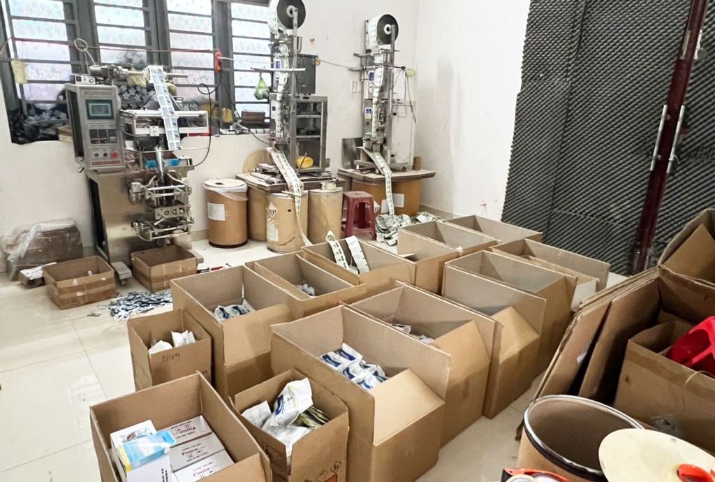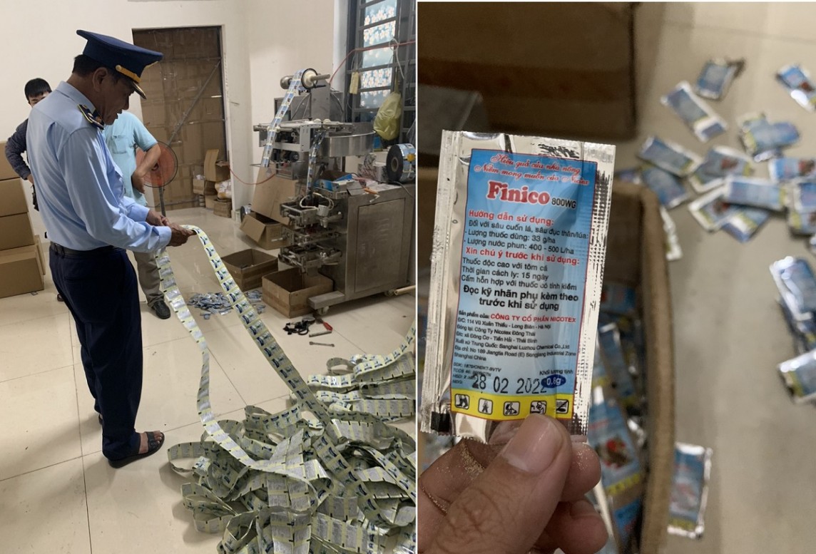 Nhận thấy vụ việc có dấu hiệu của hành vi sản xuất thuốc bảo vệ thực vật giả, lực lượng chức năng tiến hành lập biên bản vụ việc, tạm giữ các tang vật, phương tiện bao gồm: 90.150 gói và 4,5 kg sản phẩm thuốc trừ sâu các loại; 496,5 kg bao bì các loại; 371,9 kg nguyên liệu dạng bột và 200 lít nguyên liệu dạng lỏng dùng sản xuất, 7 máy cơ khí đóng gói sản phẩm.