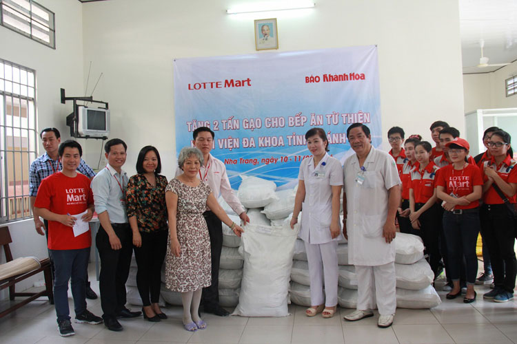 Thực hiện chương trình kinh doanh gắn kết với cộng đồng, trong ngày 10 và 11/8, Lotte Mart đã trao tặng hơn 9.000 kg gạo và sữa, cá hộp cho các cơ sở xã hội tại tỉnh Khánh Hòa. Theo Giám đốc siêu thị Lotte Mart Nha Trang Phạm Hữu Chí, số quà này do các đối tác, khách hàng tham gia đóng góp trong dịp khai trương Lotte Mart Nha Trang. Thay vì nhận hoa chúc mừng khai trương, doanh nghiệp nhận gạo từ thiện để trao cho các cơ sở nuôi dưỡng những đối tượng kém may mắn trong xã hội, từ đó thể hiện hơn nữa trách nhiệm của doanh nghiệp với cộng đồng và địa phương.