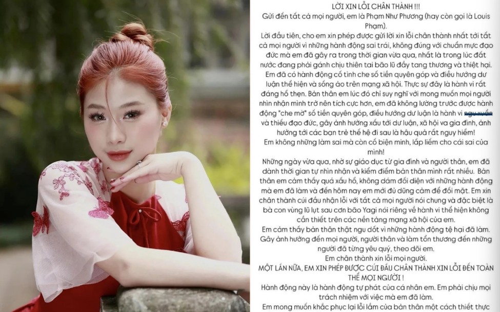 | Bức tâm thư xin lỗi của Louis Phạm – Phạm Như Phương đăng tải ngày 21/9 được phát hiện viết bằng Chat GPT - (Ảnh màn hình). |