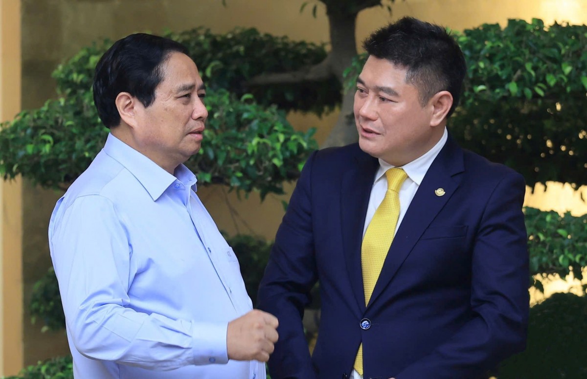 Thủ tướng Phạm Minh Chính và Chủ tịch Ngân hàng TMCP Lộc Phát Việt Nam (LPBank) Nguyễn Đức Thụy trao đổi cởi mở bên lề Hội nghị Thường trực Chính phủ |